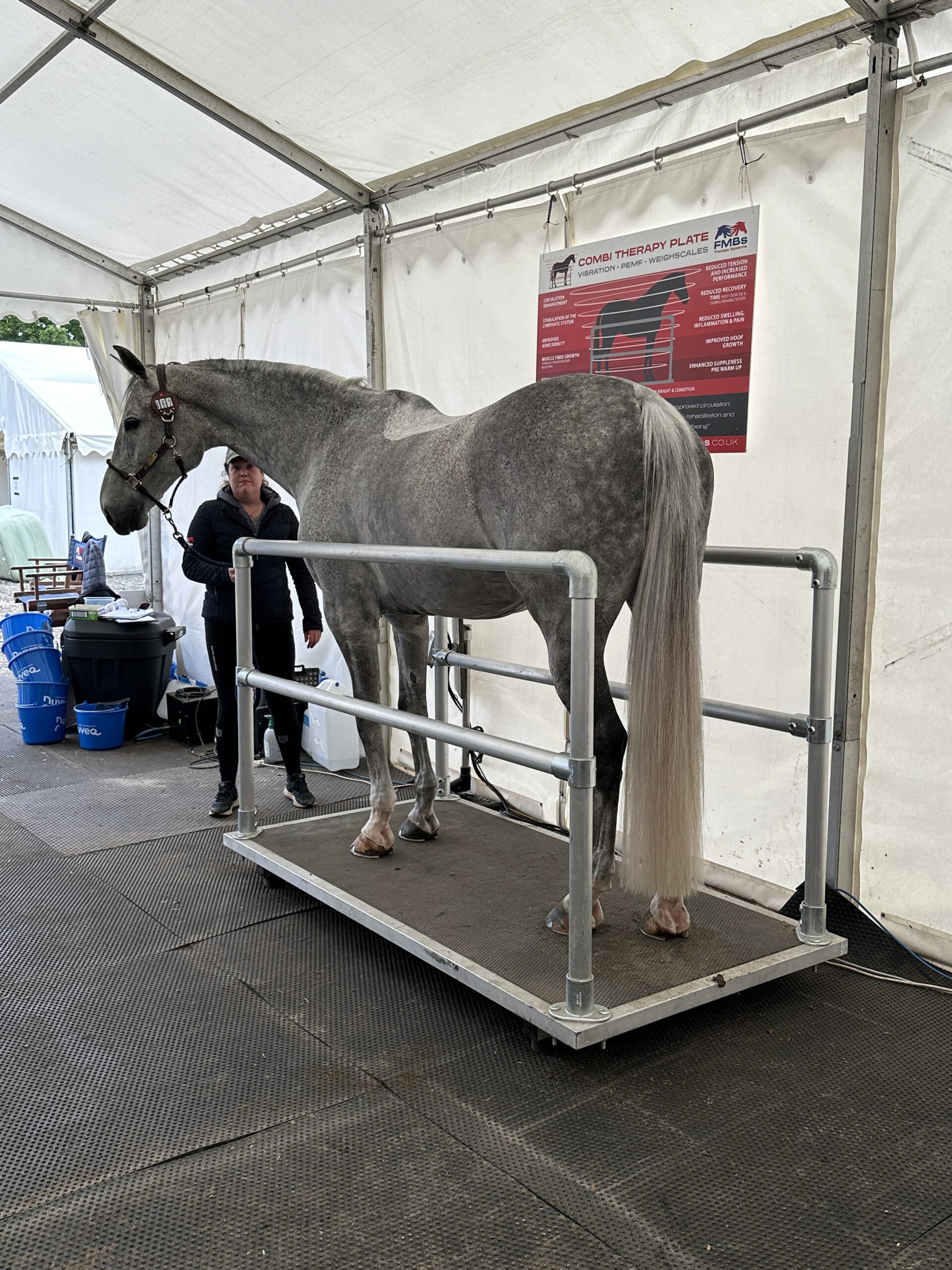 Our Combi Floor is a state-of-the-art equine therapy floor which combines controlled vibration with pulsed electromagnetic field therapy. It can be used pre warm up and post exercise for recovery and rehabilitation. You can even use the floor whilst you carry out tasks like plaiting and clipping. The control box allows you to easily select an individual therapy or combination of therapies for your horse for the most suitable time, intensity and frequency. You also have the option of setting up special programmes for certain horses if needed. Comes with side railings. The floor dimensions are 7.2ft x 3.6ft x 7in high. It be placed in a pit so Combi Floor is level with the concrete, or on a strong level surface where the horses can easily step on and off. The Combi floor can be installed in an existing stable, cross-tie bay, stable yard, trailer or lorry. Available with optional weighing scales, ramps and solarium.